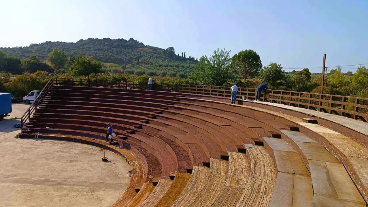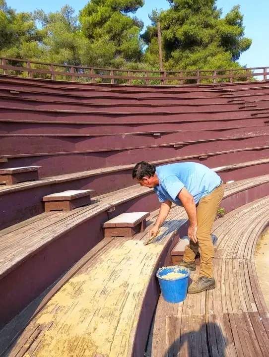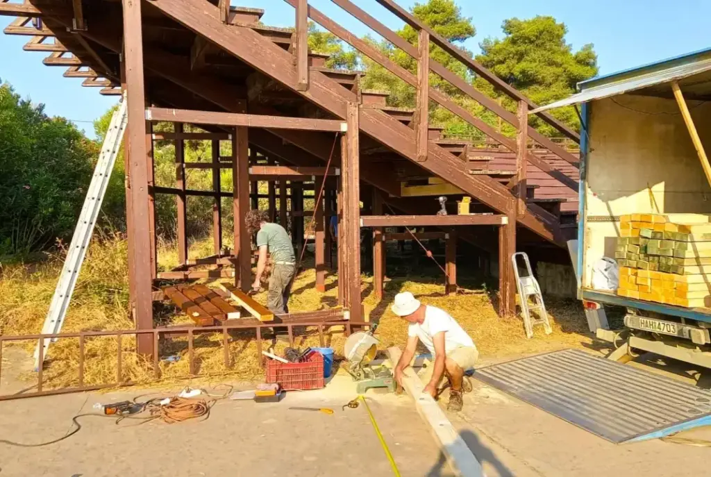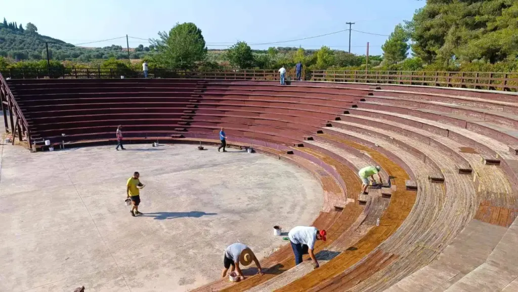Εργασίες αποκατάστασης των φθορών και ανακαίνισης του ξύλινου θεάτρου της Αρχαίας Ήλιδας εκτελούνται μετά από δεκαετίες από εξειδικευμένα συνεργεία, προκειμένου το θέατρου να υποδεχτεί απολύτως ασφαλές του θεατές του 34ου Διεθνούς Φεστιβάλ Αρχαίας Ήλιδας.