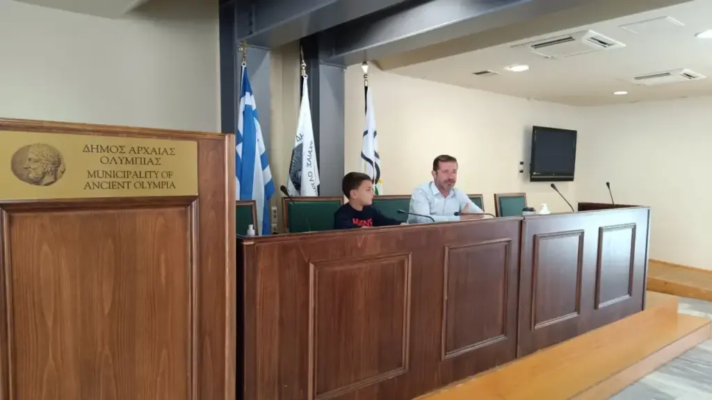 Μια ξεχωριστή συνέντευξη έδωσε σήμερα ο Αντιδήμαρχος Παιδείας, κ. Αντώνης Χρυσανθακόπουλος, στους μαθητές του Πρώτου Πειραματικού Δημοτικού Σχολείου Πύργου που επισκέφθηκαν το Δημαρχείο Αρχαίας Ολυμπίας.
