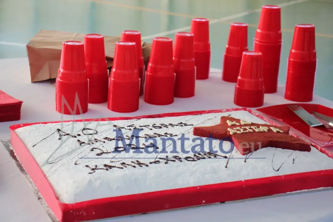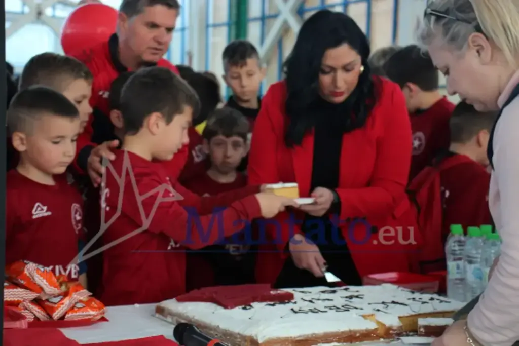 Στην συνέχεια η Μαρία Κρινά μοίρασε την πίτα πρώτα στους μικρούς αθλητές, στην συνέχεια στους επισήμους και στους γονείς.