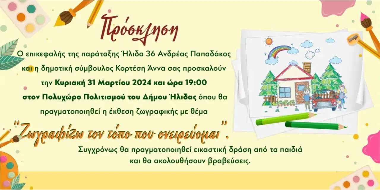 Ζωγραφίζω τον τόπο που ονειρεύομαι by Maria Petroutsa 31 Μαρτίου 2024 31 Μαρτίου 2024 826 Μια δράση για παιδιά φιλοξενεί σήμερα ο Πολυχώρος. Μια πρωτοβουλία της παράταξης ‘Ηλιδα 36 του Ανδρέα Παπαδάκου. 0 comment 0 FacebookTwitterLinkedinWhatsappViber previous post Ο “άνθρωπος με το γαρύφαλλο” του Πικάσσο στο μουσείο Νίκου Μπελογιάννη της Αμαλιάδας next post Εμβολιασμός κατά της ιλαράς από τον Δήμο Ήλιδας και το ΕΟΔΥ, σε παιδιά οικογενειών Ρομά συνοικιών της Αμαλιάδας You may also like Ο Κυριάκος Βελόπουλος έδωσε τα χέρια με τον... 26 Φεβρουαρίου 2026 Ο Δήμος βουλιάζει και τους φταίει η κριτική; 6 Φεβρουαρίου 2026 Η Αρχαία Ήλιδα πνίγεται και οι αρμόδιοι συνεχίζουν... 5 Φεβρουαρίου 2026 Πολιτιστική παρακμή με ευθύνη του Δημάρχου! 2 Φεβρουαρίου 2026 Ο συγκεντρωτικός Δήμαρχος στην πόλη που του γύρισε... 26 Ιανουαρίου 2026 ΚΟΠΗ ΠΙΤΑΣ ΣΤΟΥΣ ΠΑΙΔΙΚΟΥΣ ΣΤΑΘΜΟΥΣ 24 Ιανουαρίου 2026 Εκλέχθηκε με λόγια, αλλά κυβερνά με σιωπή και... 21 Ιανουαρίου 2026 Ολοκληρώθηκε στην Αμαλιάδα το μεγάλο συνέδριο της Ένωσης... 4 Νοεμβρίου 2024 Αυτά τα Χριστούγεννα έρχεται “Το Μαγικό Εργοστάσιο του... 4 Νοεμβρίου 2024 Συνάντηση με την Γενική Γραμματέα Υποδοχής Αιτούντων Άσυλο 4 Νοεμβρίου 2024