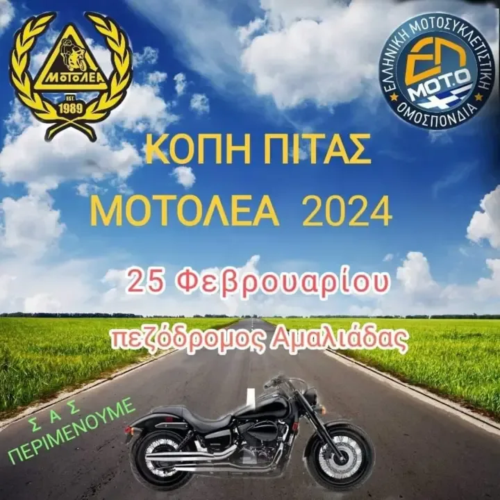 Η Μοτοσυκλετιστική Λέσχη Αμαλιάδας – ΜΟΤΟΛΕΑ προετοιμάζεται να κόψει την Πρωτοχρονιάτικη πίτα της σε μια εντυπωσιακή εκδήλωση που θα πραγματοποιηθεί την Κυριακή 25 Φεβρουαρίου στις 11:00 π.μ. Έξι αγαπημένα μαγαζιά στον Πεζόδρομο, όπως το Avenue, το Sinner, το Forty, το Pere, το Fabric, και το Λόστον, θα φιλοξενήσουν αυτή τη μεγάλη γιορτή που αναμένεται να περιλαμβάνει πολλές εκπλήξεις και ροκ διάθεση!