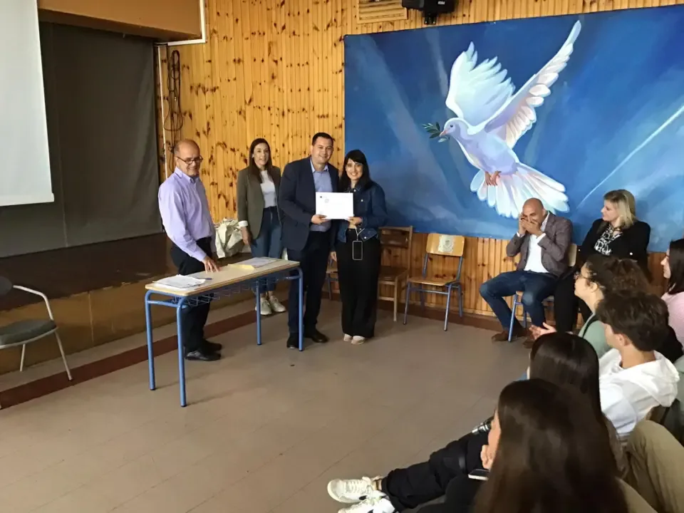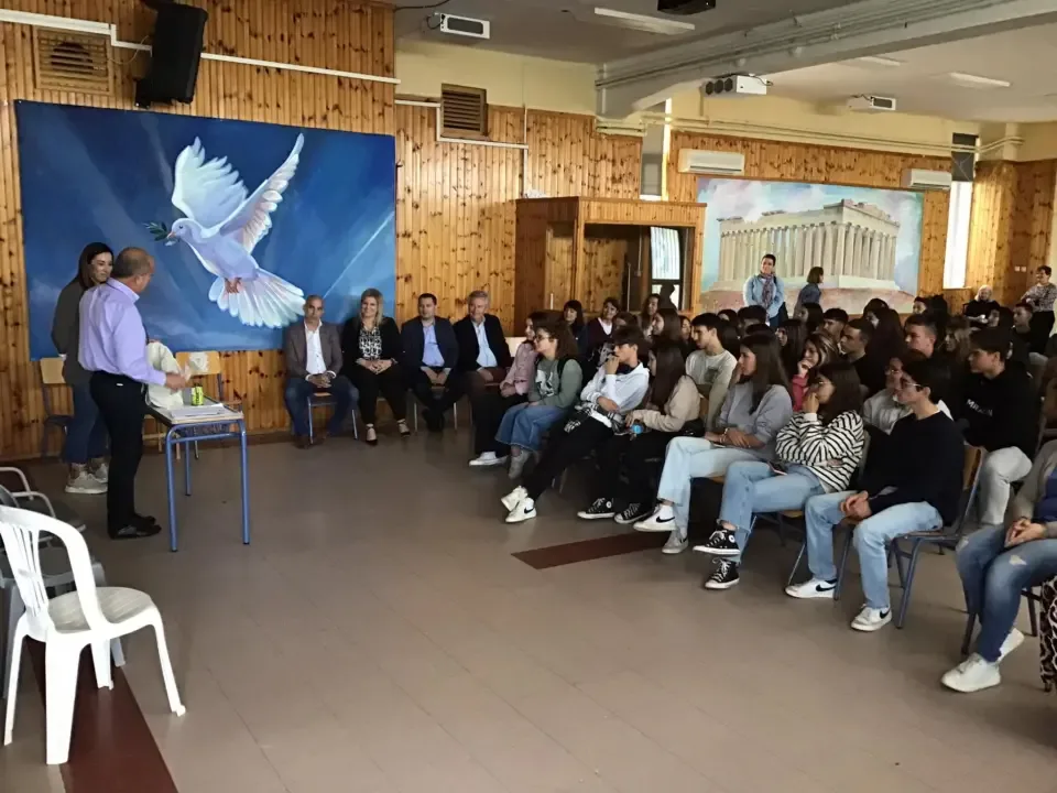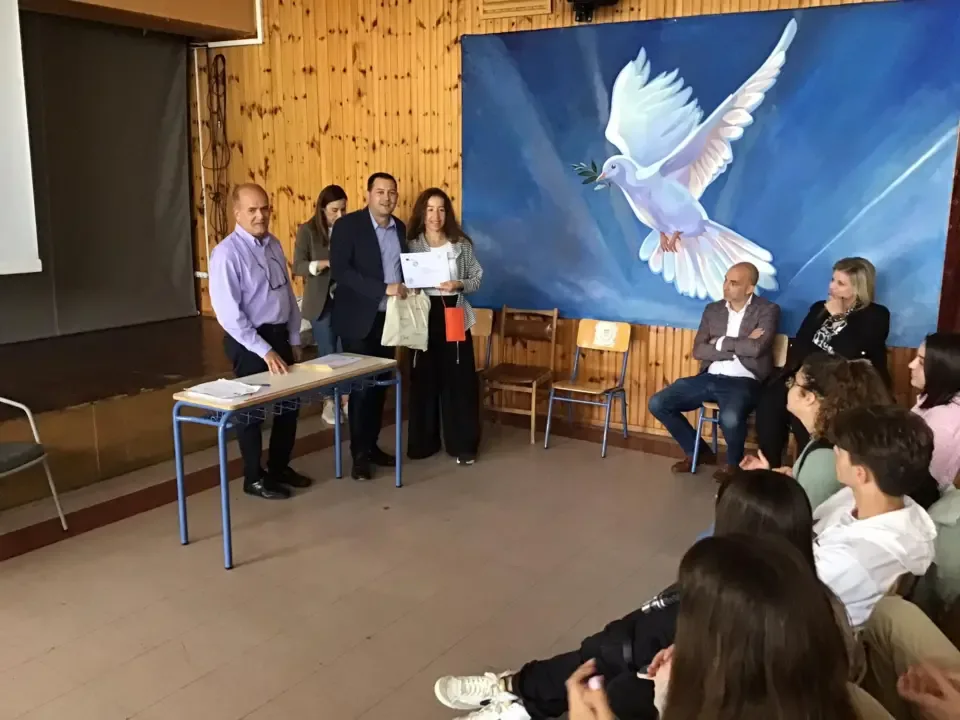 Στην εκδήλωση που πραγματοποιήθηκε στο αμφιθέατρο του σχολείου ο αντιπεριφερειάρχης Εξυπηρέτησης του πολίτη & Ηλεκτρονικής Διακυβέρνησης Θεόδωρος Βασιλόπουλος συνεχάρη την Δνση , τους μαθητές – μαθήτριες και τους εκπαιδευτικούς που συμμετείχαν στο πρόγραμμα το οποίο περιελάμβανε εκπαιδευτικά ταξίδια σε Γαλλία και Πορτογαλία.