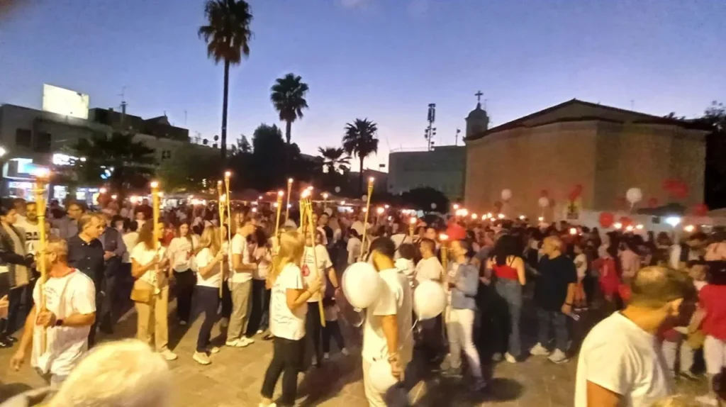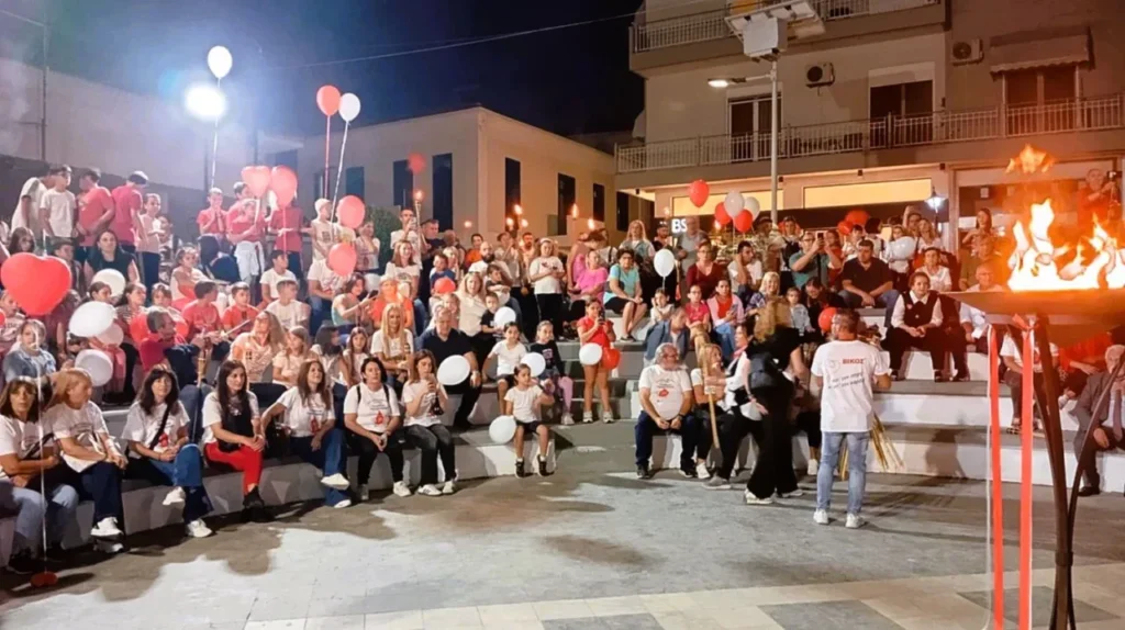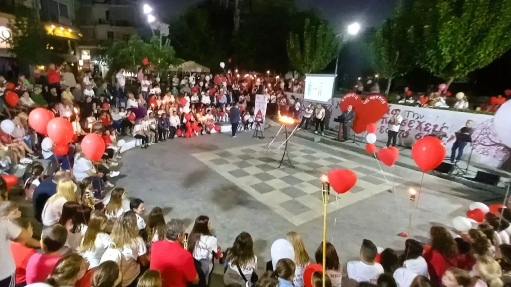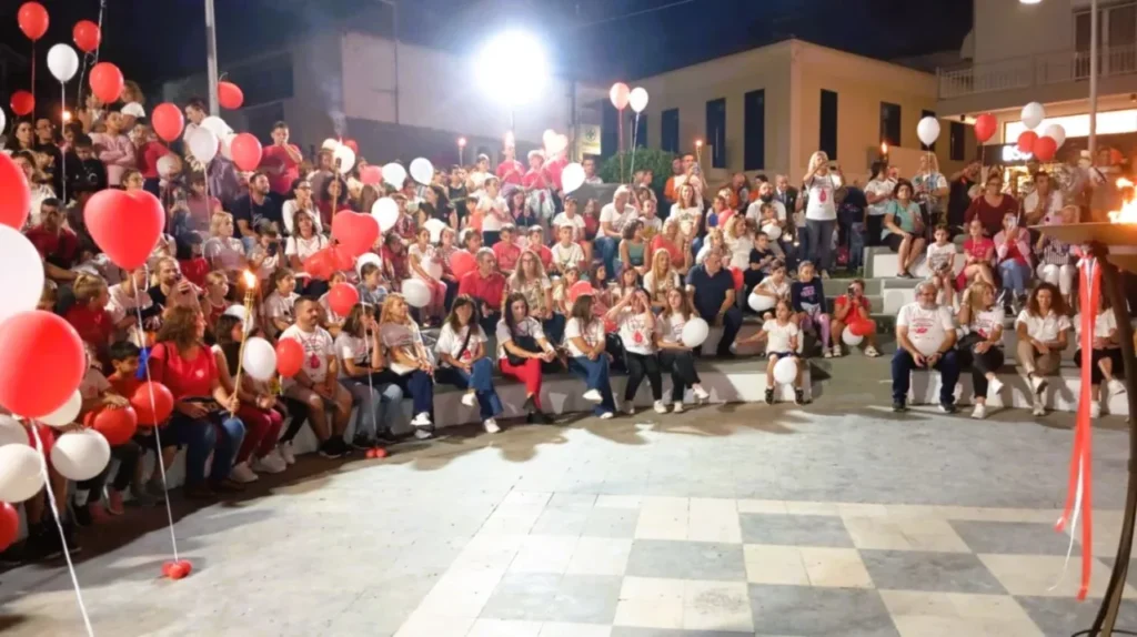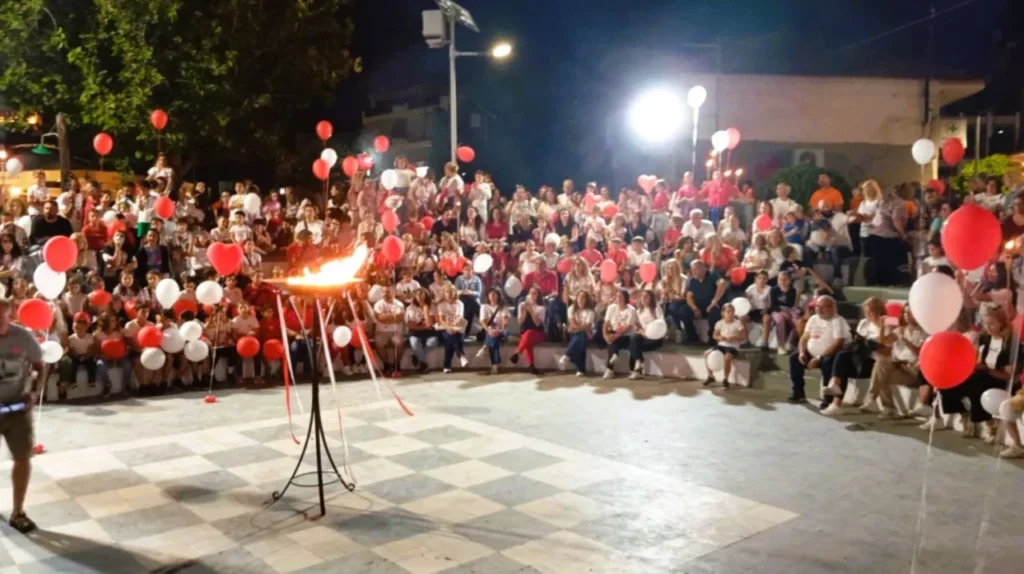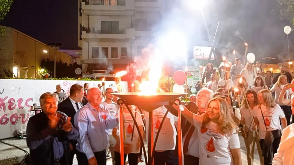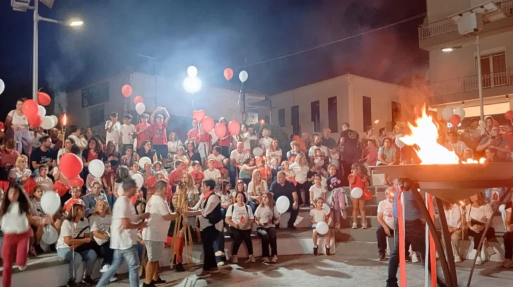 Από εκεί, όλοι μαζί με δάδες στα χέρια κα μια κόκκινη καρδιά στα λευκά και κόκκινα μπλουζάκια, μετέβησαν σε μια μεγαλειώδη πορεία αγάπης, στην περιοχή της Σκακιέρας (πλατεία Λαζαράκη), όπου έγινε η γιορτή της υποδοχής της φλόγας, με τους εκπροσώπους του Δήμου και εθελοντές αιμοδότες να ανάβουν το βωμό, «μεταλαμπαδεύοντας» το μήνυμα της εθελοντικής προσφοράς αίματος ως ύψιστη πράξη αλληλεγγύης προς τον συνάνθρωπο.