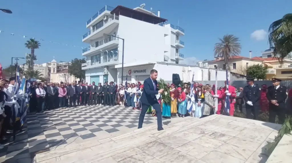 Ακολούθησε κατάθεση στεφάνων από τον Δήμαρχο Ήλιδας κ. Χρήστο Χριστοδουλόπουλο και τις αρχές του τόπου, καθώς και τους εκπροσώπους των ενόπλων δυνάμεων και των σωμάτων ασφαλείας.