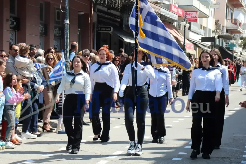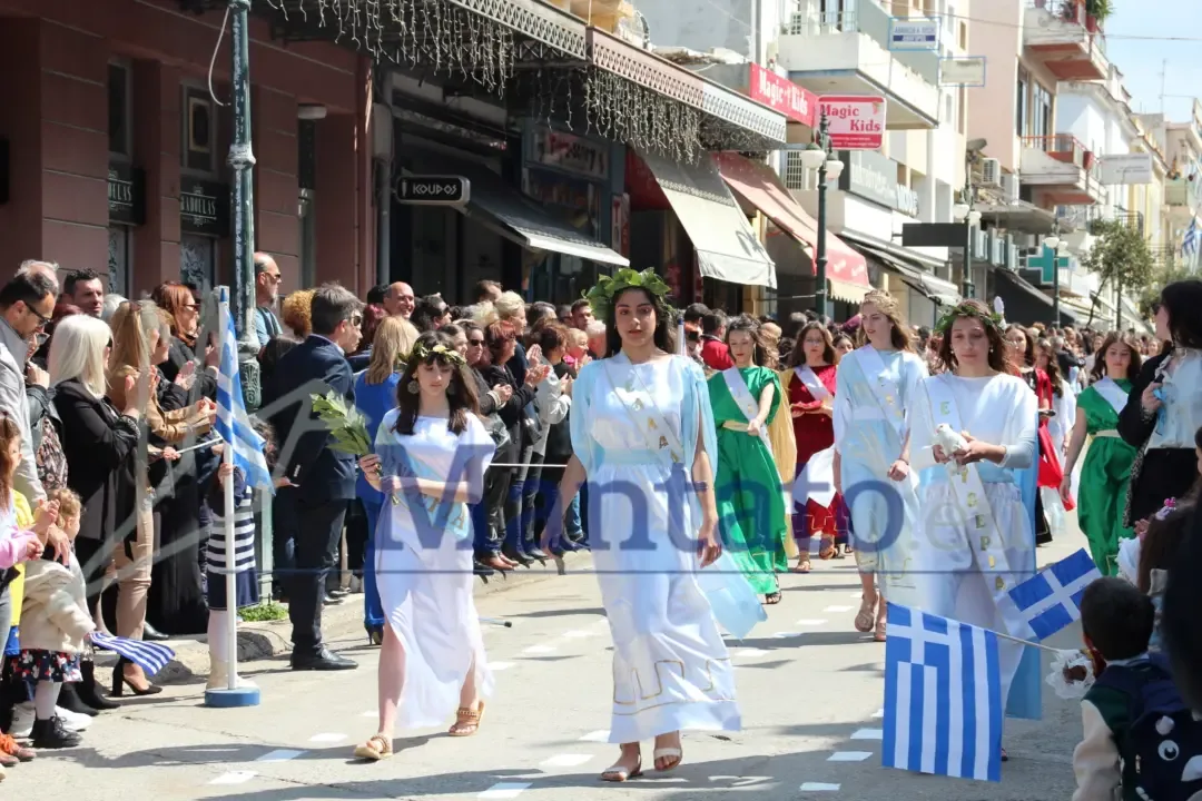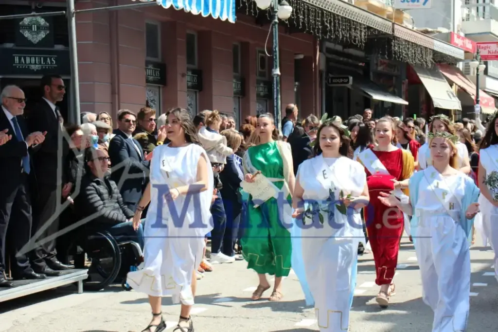 Σειρά είχαν τα Γυμνάσια με τις εντυπωσιακές Χλαμύδες. Με συνθήματα την Ελευθερία και την Αρετή παρέλασαν με υπερηφάνεια.