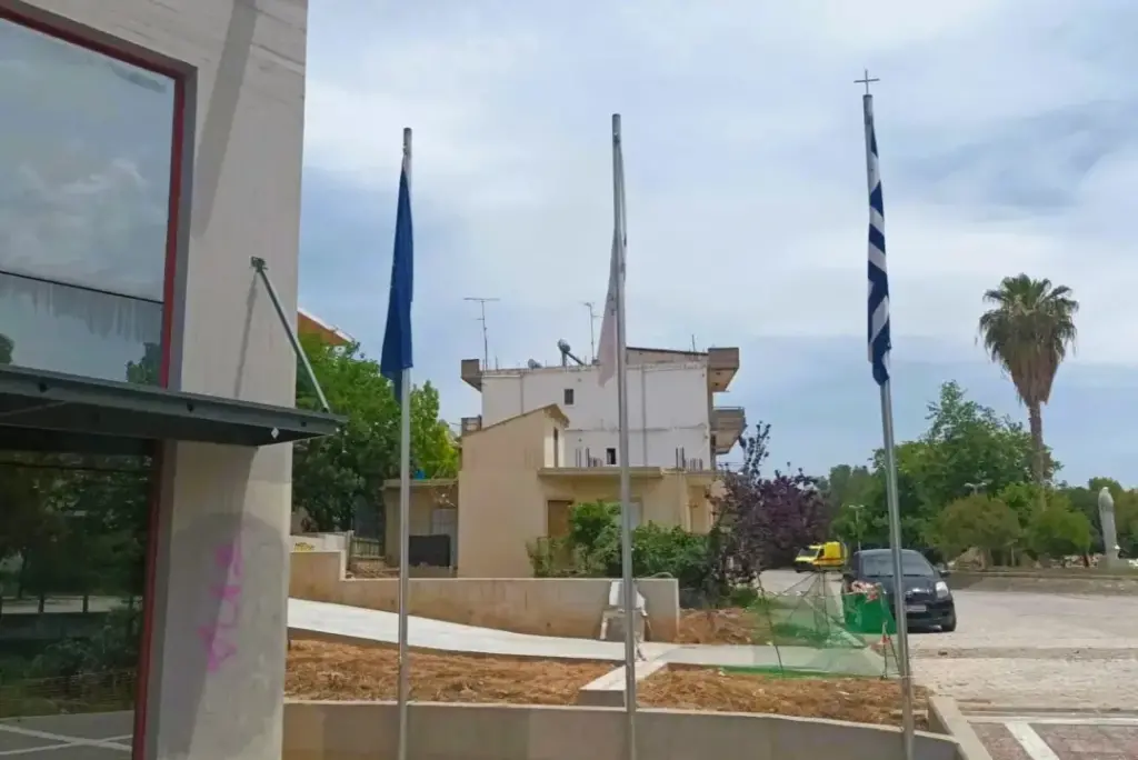 Αρχικά, από την πρώτη στιγμή ανάληψης των καθηκόντων της δημοτικής αρχής στο χώρο τοποθετήθηκαν οι ιστοί και οι σημαίες που ενδείκνυνται για χώρους που φιλοξενούν δημοτικά και δημόσια κτήρια και συγκεκριμένα η Ελληνική, η Ευρωπαϊκή και η σημαία με το έμβλημα του Δήμου Ήλιδας.