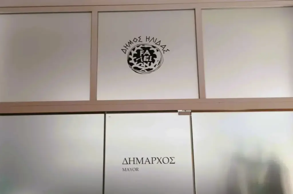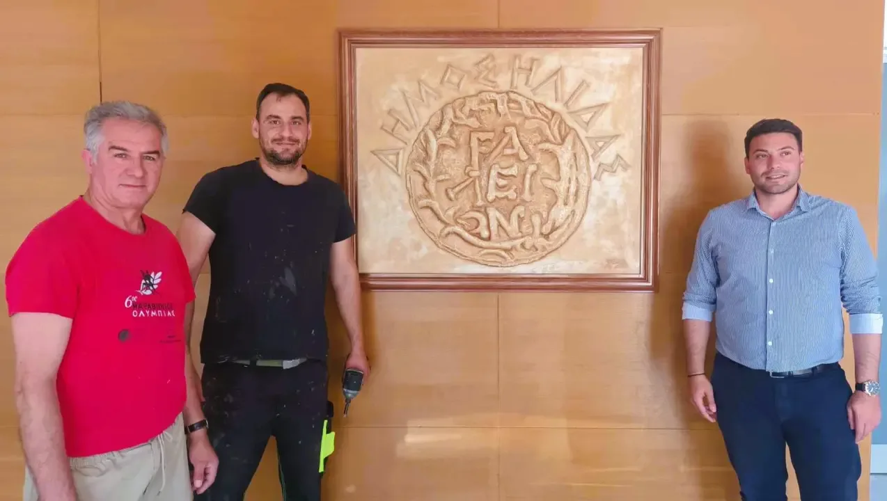 Εν συνεχεία ολοκληρώθηκαν οι εργασίες που απαιτούνταν στο γραφείο που φιλοξενεί το Δήμαρχο Ήλιδας, το οποίο ήταν στο μεγαλύτερό του μέρος ανοιχτό και πλέον εδώ και λίγα 24ωρα τοποθετήθηκε στην είσοδο του Συνεδριακού Κέντρου και γλυπτό με το έμβλημα του Δήμου Ήλιδας, το οποίο είχε φιλοτεχνήσει το 2014 και είχε παραχωρήσει στο Δήμο ο εικαστικός Κρίστο Χάσα.