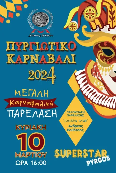 Στο επίκεντρο του ενδιαφέροντος χιλιάδων κατοίκων από την Ηλεία και όχι μόνο αναμένεται να βρεθεί το Πυργιώτικο Καρναβάλι που διαθέτει πληθώρα εκδηλώσεων με κύριο στόχο να βγάλει μικρούς και μεγάλους στο δρόμο προκειμένου να διασκεδάσουν με ασφάλεια.