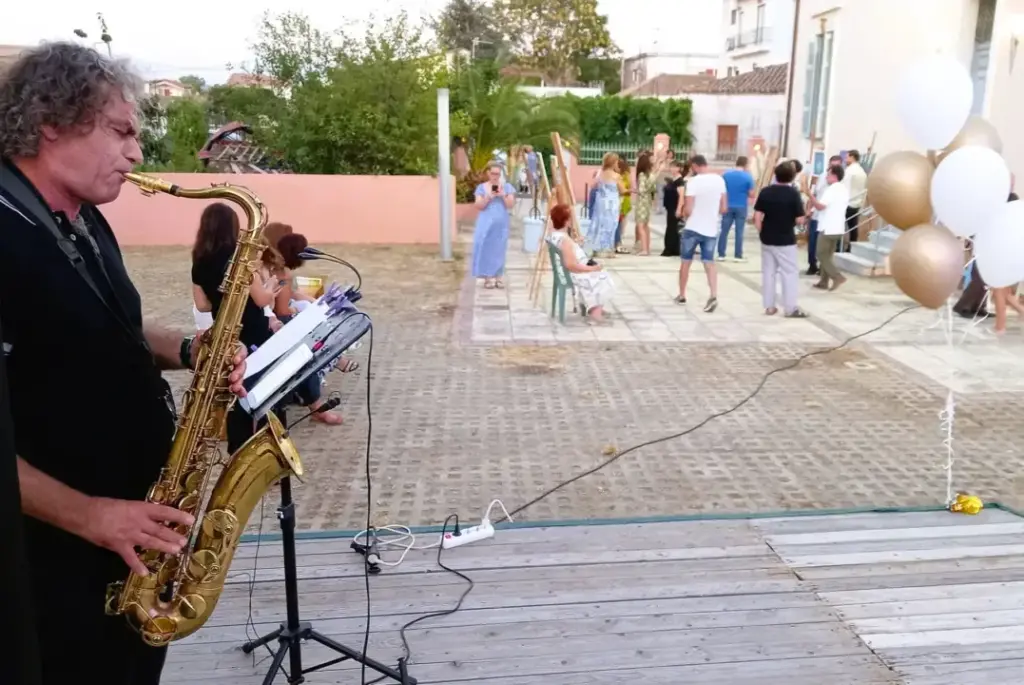Το κοινό που συμμετείχε στην εκδήλωση ξεναγήθηκε κάτω από τον έναστρο ουρανό της Αμαλιάδας στην αναδρομική έκθεση ζωγραφικής υπό τους ήχους του σαξόφωνου, σε μια εκδήλωση με τίτλο: «Το καλοκαίρι μέσα από την Τέχνη».