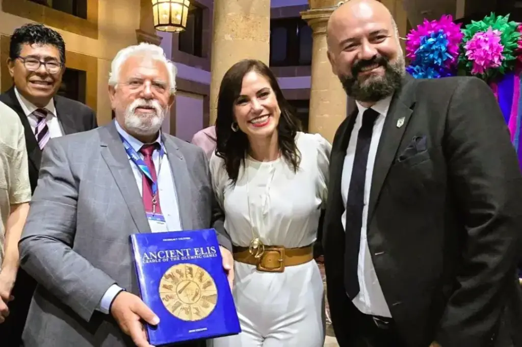 Στο πλαίσιο των Αγώνων, ο Δήμαρχος Ήλιδας είναι την ευκαιρία να συναντηθεί κατά το επίσημο δείπνο με δημάρχους από όλον το κόσμο και να ανταλλάξει δώρα με την δήμαρχο της πόλης Λεόν Alejandra Gutiérrez Campos.