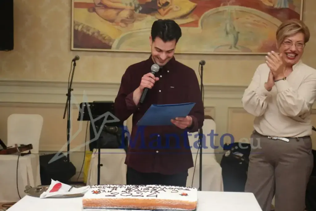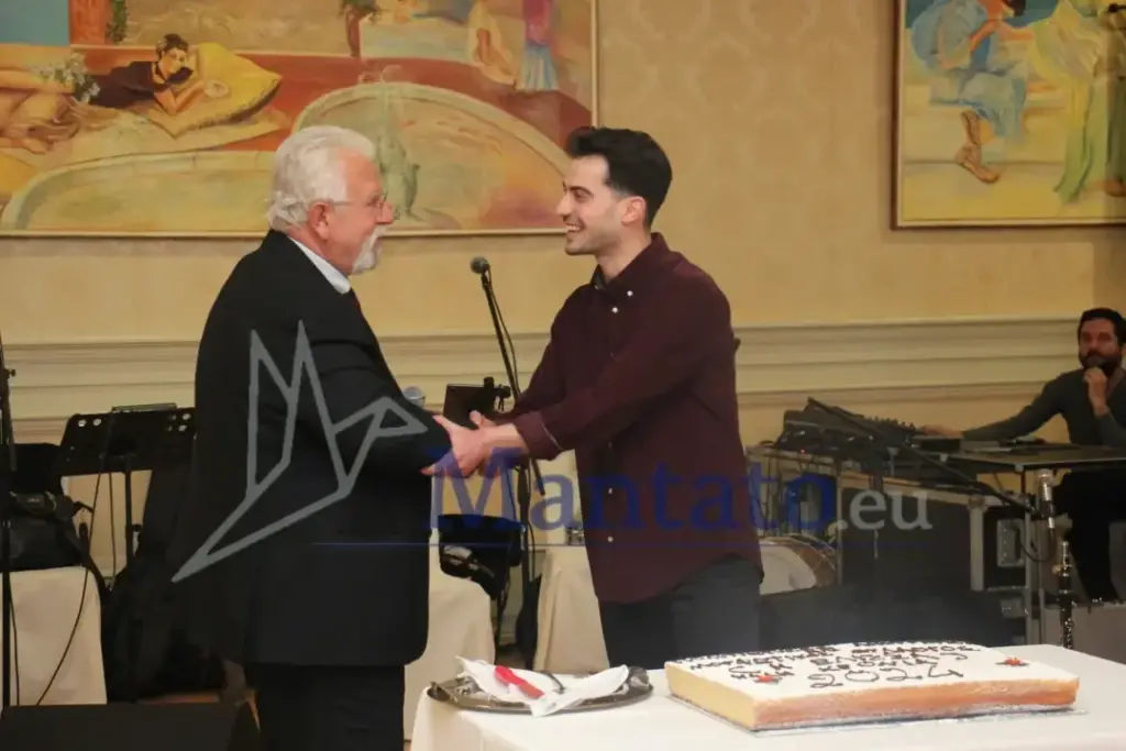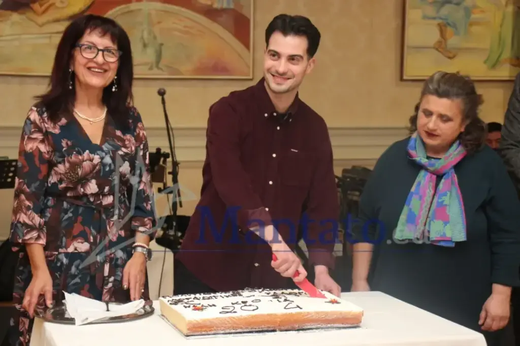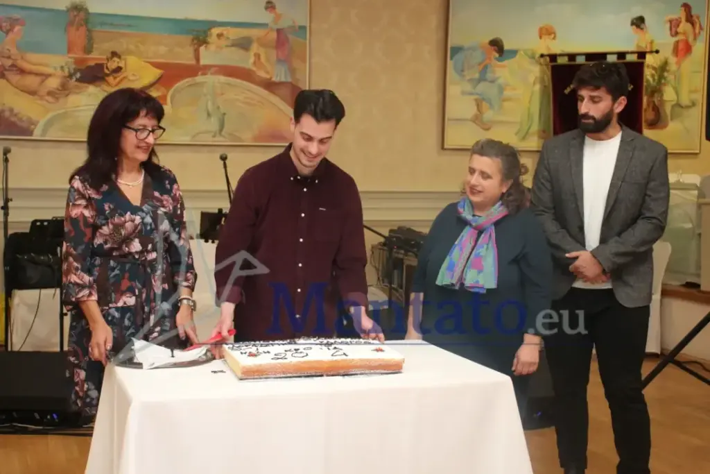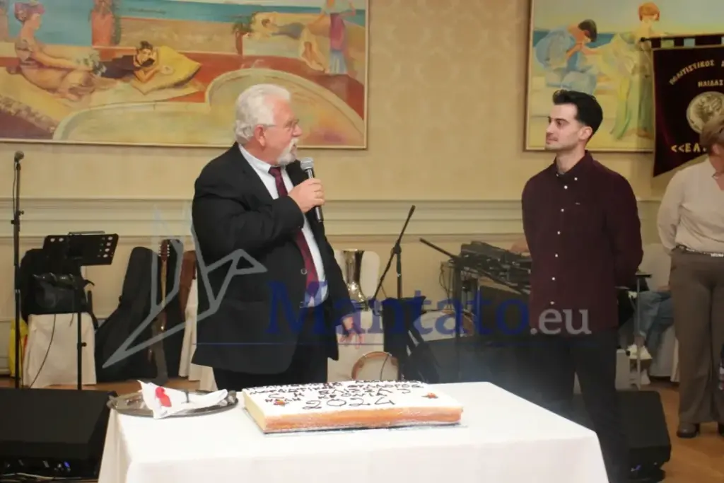 Μετά την ομιλία του Δημάρχου, ο Αντώνης σταύρωσε την βασιλόπιτα και την έκοψε συμβολικά μαζί με τα υπόλοιπα μέλη του Συλλόγου.