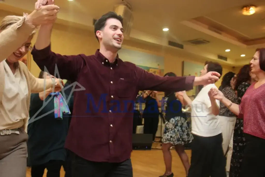 Λίγο μετά το φαγητό οι πιο τολμηροί ξεκίνησαν τον χορό. Μέσα σε ελάχιστο χρόνο οι 2 γίναν 10 και μέσα σε λίγα λεπτά σχηματίστηκαν 3 μεγάλοι κύκλοι από χορευτές. Ο Δήμαρχος κ. Χριστοδουλόπουλος δεν μπόρεσε να αντισταθεί και μαζί με την συνοδεία της συζύγου του Ιωάννας έσυρε τον χορό.