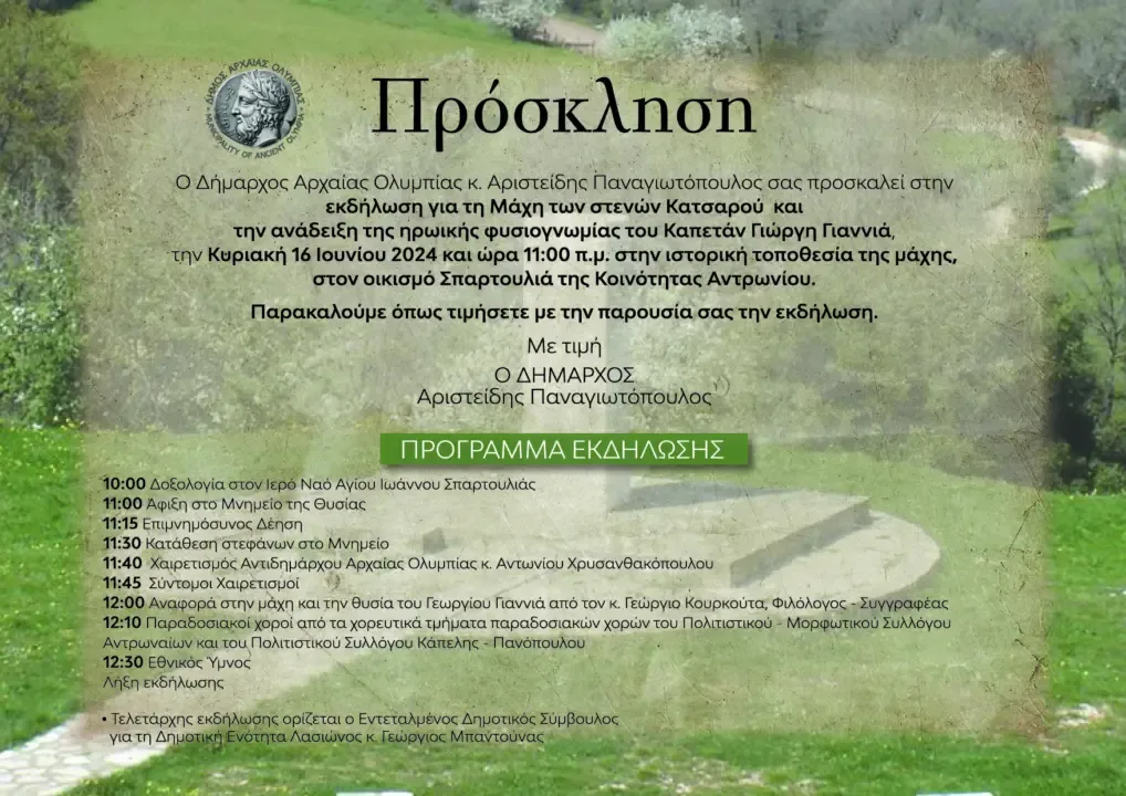 σας προσκαλεί στην εκδήλωση για τη Μάχη των στενών Κατσαρού